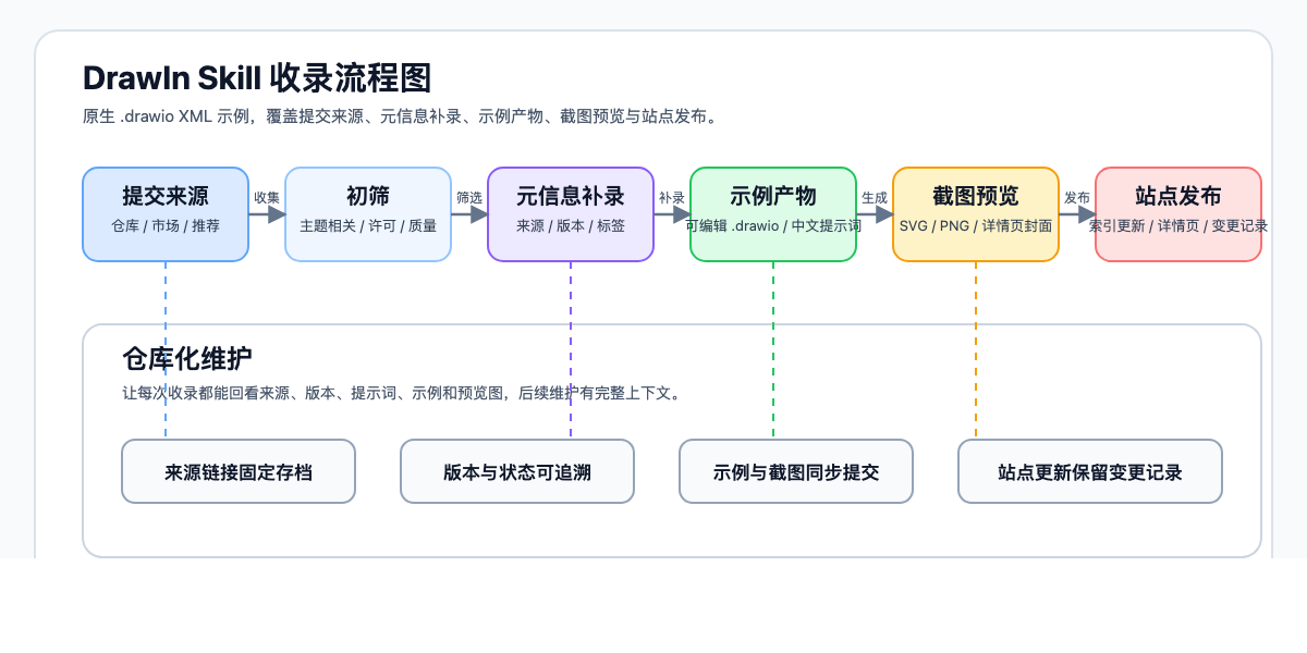 这个项目不只是 prompt 风格的 skill:它包含 draw.io XML 质量标准、示例、validator rules 和 CLI。它的价值在于让生成的 .drawio 文件更接近生产可用,而不是只做到“能渲染”。